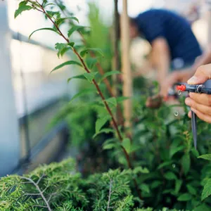 Delivers water directly to the roots slowly and efficiently using tubes and emitters. It minimizes water waste and evaporation, ideal for gardens and areas that require precise watering.